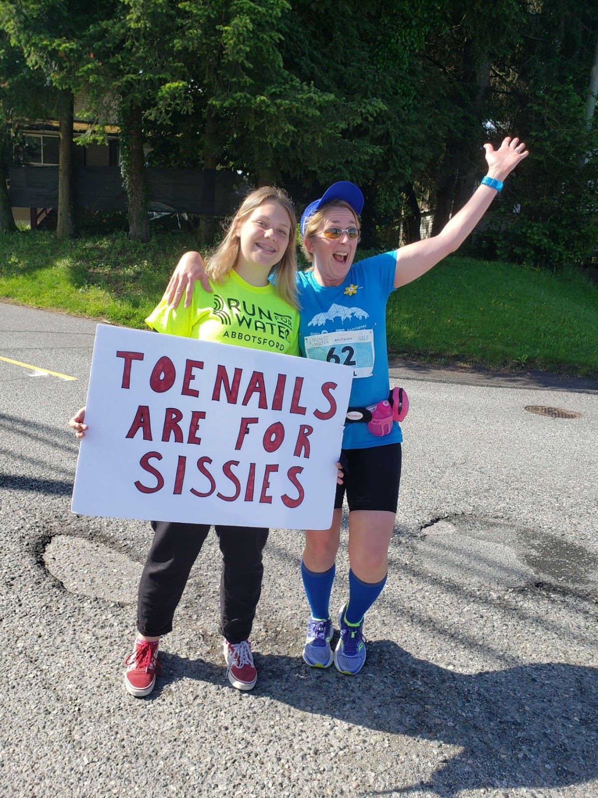 Coquitlam Cruisers: Yes, they are tapering, but Monday, Heather ran 6 km and Jennel walked 6 km and swam some length of the pool. On Tuesday morning Jennel got the run done! With Nellie she ran 6 km. Ran down to Town Centre & back! Not around…just to the park. Kudos to all of you who ran the Peach City 10K!!!!!!! from Heather & Jennel “Good Job Men!!!” (and women!!!) Best of luck to Jennel and Heather at the Run for Water on Sunday!!!